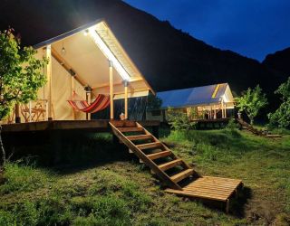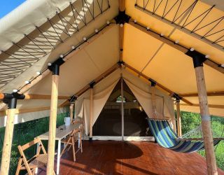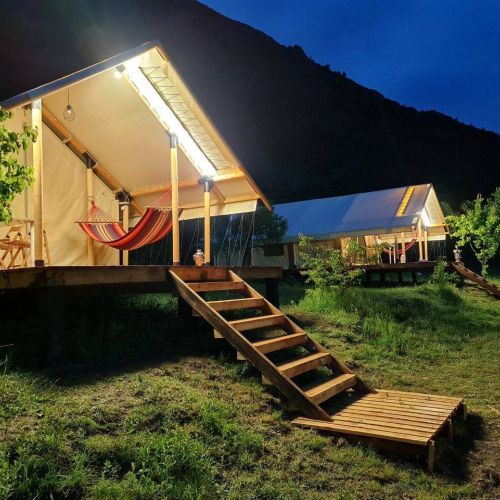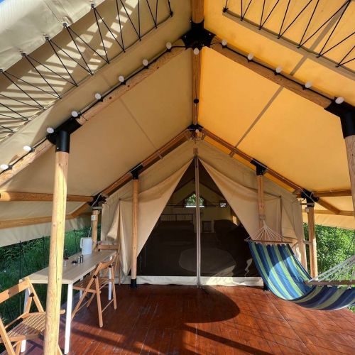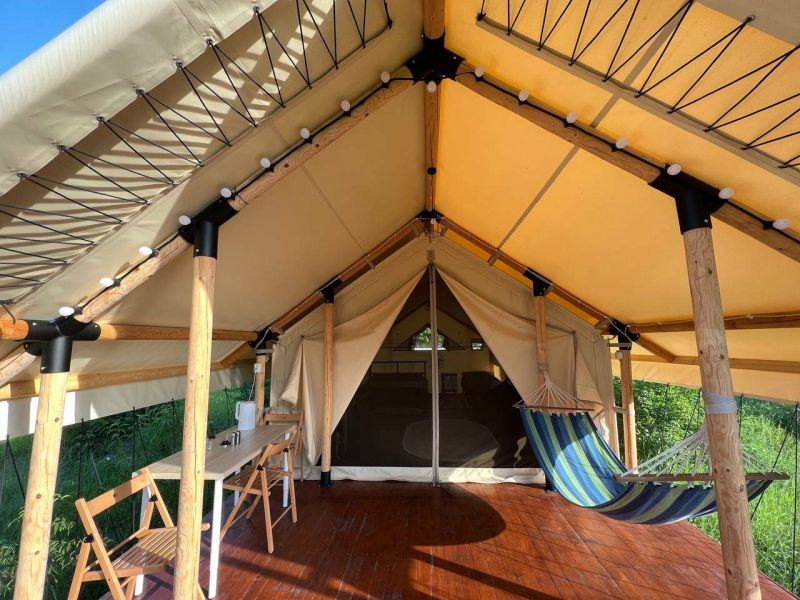 Глэмпинг включает в себя уютные-палатки-шатры, оборудованные всем необходимым для комфортного отдыха. В палатках есть санузел с душем, мебель и сеть wi-fi.