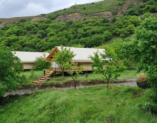Глэмпинг «Сад», расположенный в Гунибском районе Дагестана, отличный вариант для тех, кто хочет отдохнуть вдали от шумных мегаполисов в окружении первозданной природы. Вокруг – величественных горы, чистый воздух и сады абрикосовых деревьев. До аэропорта Махачкалы и побережья Каспийского моря – около 120 километров, по горным серпантинам такую дорогу можно преодолеть за 2–3 часа.